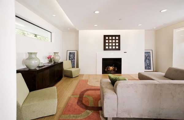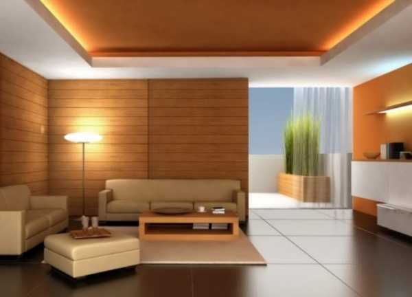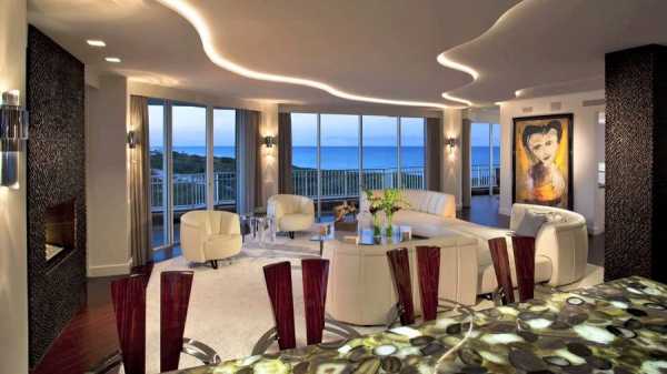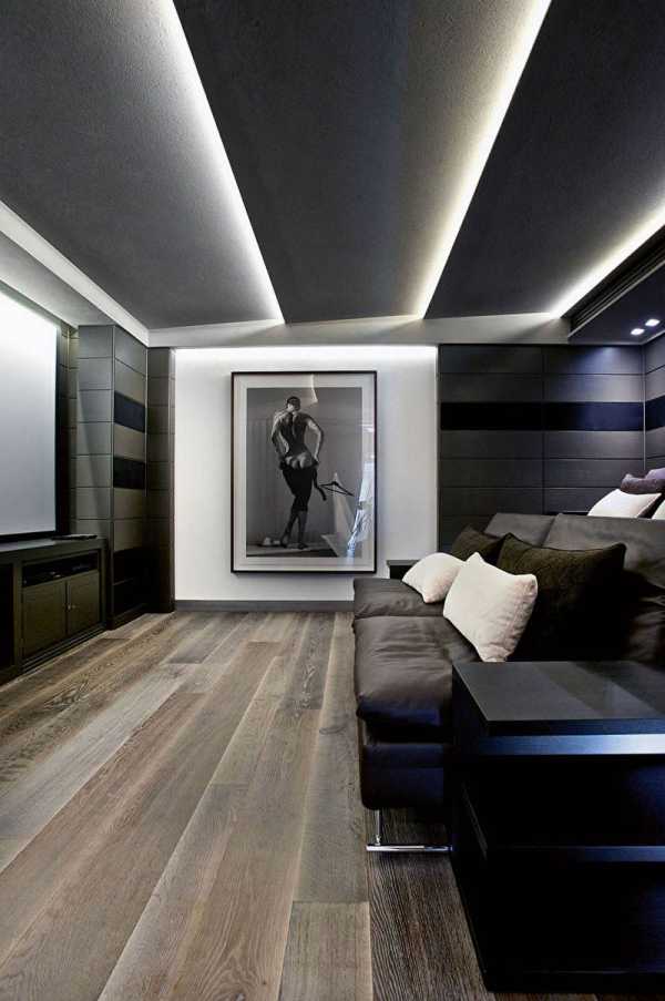 Для гостиной или других больших комнат очень подходят «парящие» потолки. Это делается добавлением второго (нижнего) уровня в центре комнаты. Во внутреннюю конструкцию монтируется яркое диодное освещение, которое падает на предметы не под прямым углом, а отсветом от верхнего, притопленного яруса, и стен.