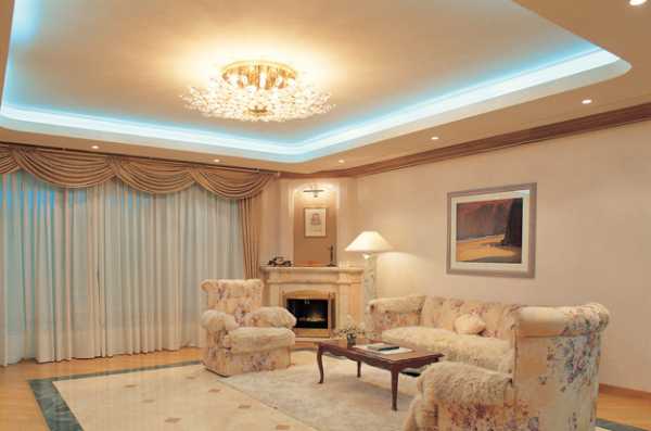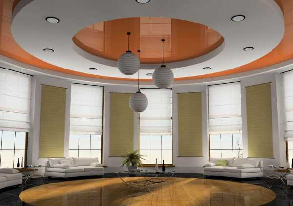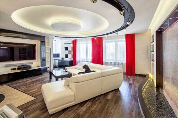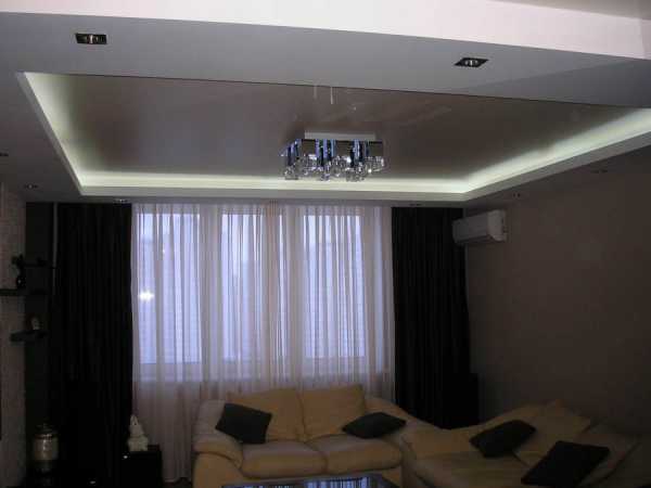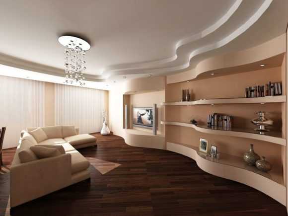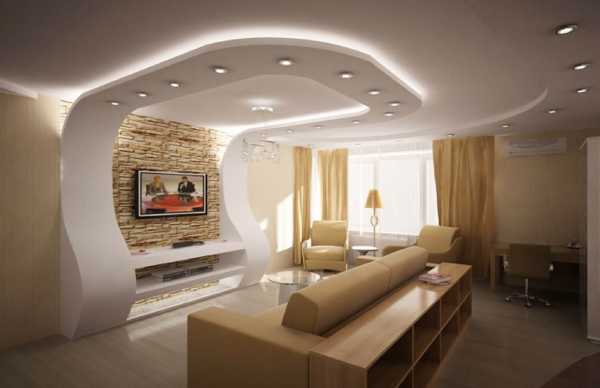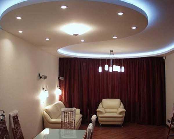 Двухуровневые потолки в зале из гипсокартона: фото
