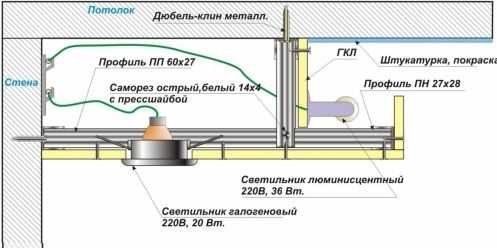 Устройство двухъярусного потолка