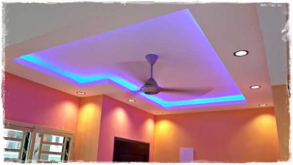 В последнее время популярностью пользуются двухуровневые системы гипсокартона, где нижний уровень подвесной, выполненный из листового материала гипсокартона, а верхний – натяжной. Между ними образуется пространство, в котором обычно располагают осветительные приборы. Зачастую для формирования уникального интерьера используется светодиодная лента, установленная по периметру уровней. Этот источник выступает в роли декоративного, а его цвет подбирается в соответствии с общим цветовым решением интерьера. Обычно светодиодную ленту дополняют люстрой в середине помещения.