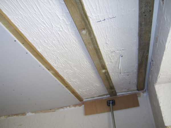 - Висячий каркас также обшивают гипсокартоном, предварительно сделав вывод проводки под освещение.