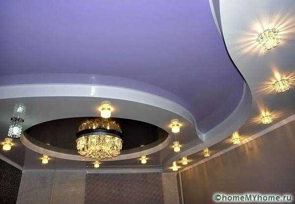 Дизайнерский подход к вопросу освещения позволяет добиться уюта в помещении и зрительно увеличить комнату. При двухуровневых потолках используют два вида света: основной и дополнительный.