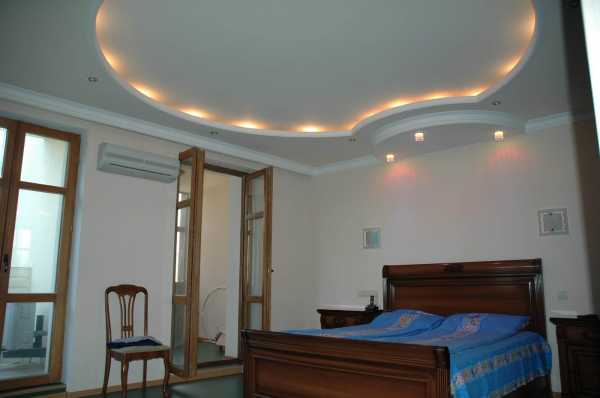 Потолки из гипсокартона для спальни. Фото и описание работ по установке светильников