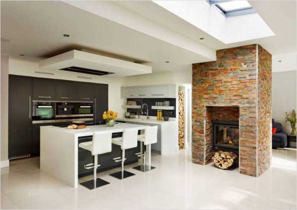Если кухня делится на несколько зон, то над каждой зоной можно сделать гипсокартонный потолок разного уровня. Зонирование принято подчеркивать и цветом.