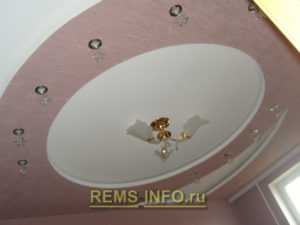 Благодаря полной экологичности, монтаж гипсокартонного потолка в детской комнате полностью оправдан. Здесь, конечно, грех ограничиваться одним уровнем и белым цветом. Потолок в детской просто обязан быть ярким, красочным. Часто используются розовые, голубые, желтые, зеленые цвета. В детской вы, безусловно, оцените удобство возможности окраски.