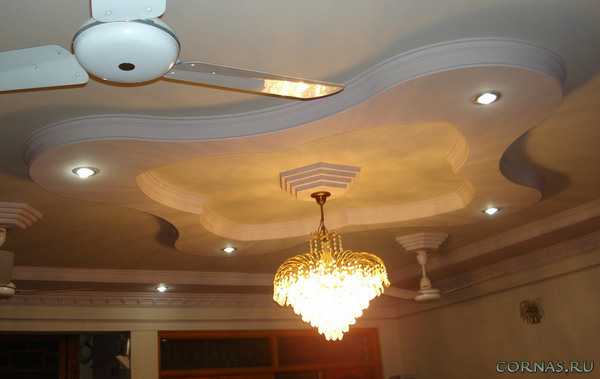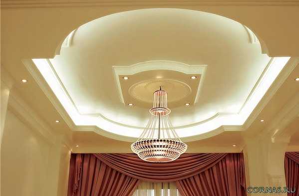 Однако в моде не простые конструкции, а многоуровневые потолки со сложными фигурными элементами. Они будут выигрышно, по-королевски смотреться в высоких помещениях.