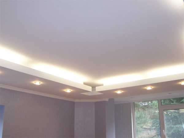 Пространство, образованное за счет разницы уровней, идеально подходит для размещения софитов, которые способны создать в помещении совершенно необыкновенное освещение. Да и сам потолок, благодаря дополнительной подсветке, смотрится оригинально и привлекательно.