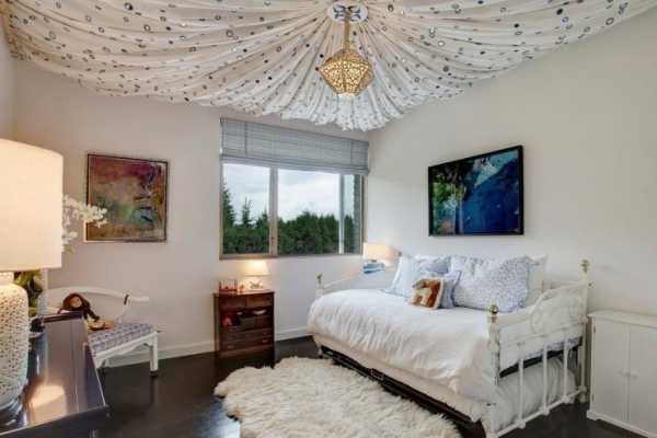 ΠΠ΅Π»ΡΠΉ ΡΠ²Π΅Ρ β ΡΠ½ΠΈΠ²Π΅ΡΡΠ°Π»ΡΠ½ΡΠΉ, Π½ΠΎ Π»ΡΡΡΠ΅ ΡΠΎΡΠ΅ΡΠ°ΡΡ Π΅Π³ΠΎ Ρ Π΄ΡΡΠ³ΠΈΠΌΠΈ ΠΎΡΡΠ΅Π½ΠΊΠ°ΠΌΠΈ, ΡΡΠΎΠ±Ρ ΠΊΠΎΠΌΠ½Π°ΡΠ° Π½Π΅ Π²ΡΠ³Π»ΡΠ΄Π΅Π»Π° Β«Π±ΠΎΠ»ΡΠ½ΠΈΡΠ½ΠΎΠΉΒ». Π Π²ΠΎΡ ΡΠ΅ΠΌΠ½ΠΎΠ³ΠΎ ΠΏΠΎΡΠΎΠ»ΠΊΠ° Π»ΡΡΡΠ΅ ΠΈΠ·Π±Π΅Π³Π°ΡΡ, Π΄Π°ΠΆΠ΅ ΡΠΎΡΠΌΠΈΡΡΡ Π½Π° ΠΏΠ»ΠΎΡΠΊΠΎΡΡΠΈ Β«Π·Π²Π΅Π·Π΄Π½ΠΎΠ΅ Π½Π΅Π±ΠΎΒ». ΠΡΡΡΡ ΡΡΠΎ Π±ΡΠ΄ΡΡ ΡΠΎΡΠ½ΡΠ΅ ΠΎΡΡΠ΅Π½ΠΊΠΈ ΡΠΈΠ½Π΅Π³ΠΎ, Π½Π΅ΠΌΠ½ΠΎΠ³ΠΎ ΡΠ΅ΡΠΎΠ³ΠΎ ΠΈΠ»ΠΈ ΡΡΠ°Π»ΡΠ½ΠΎΠ³ΠΎ, Π½ΠΎ Π½Π΅ ΡΠ΅ΡΠ½ΡΠΉ, Π³Π»ΡΠ±ΠΎΠΊΠΈΠΉ ΡΠΈΠΎΠ»Π΅ΡΠΎΠ²ΡΠΉ β ΠΌΡΠ°ΡΠ½ΡΠ΅ ΡΠ²Π΅ΡΠ° ΠΌΠΎΠ³ΡΡ ΠΏΠ»ΠΎΡ ΠΎ ΡΠΊΠ°Π·Π°ΡΡΡΡ Π½Π° ΠΏΡΠΈΡ ΠΈΠΊΠ΅ ΡΠ΅Π±Π΅Π½ΠΊΠ°.