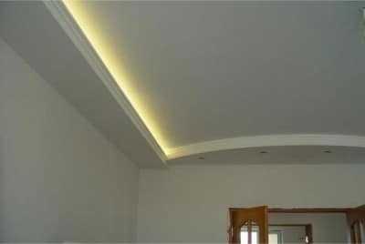 Если вы приняли решение сделать обычное, однослойное покрытие из гипсокартона, то вполне вероятно, что получится справиться собственными силами, не привлекая мастеров (фото простых конструкций смотрите в статье). А в случае если вам по душе белее сложный дизайн, тогда просто не обойтись без помощи квалифицированных специалистов. Чем гениальнее дизайн и требования, там соответственно выше должна быть квалификация мастера исполняющего заказ.