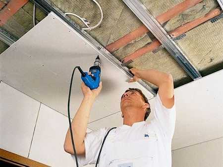 Следует различать способы, с помощью которых гипсокартон крепится к потолку.