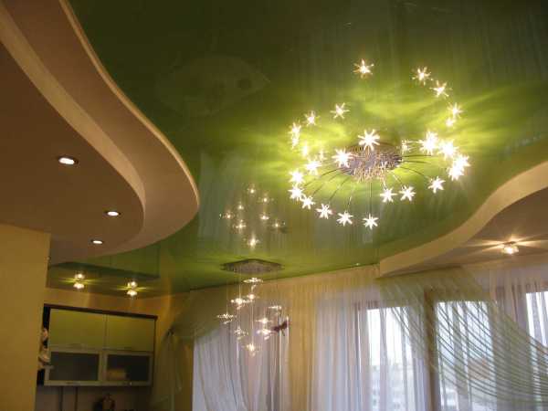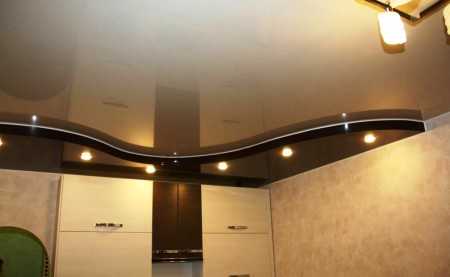 Комбинирование глянцевого натяжного полотна и гипсокартонного потолка
