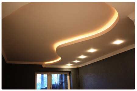 Красивый потолок из ГКЛ с оригинальной подсветкой