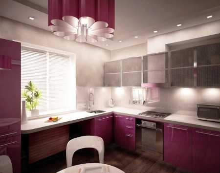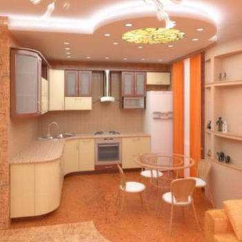 - Подвесной потолок из гипсокартона меняет визуальное восприятие кухни, расширяет ее.