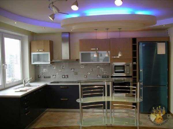 Некоторые варианты использования потолка на кухне из гипсокартона с подсветкой