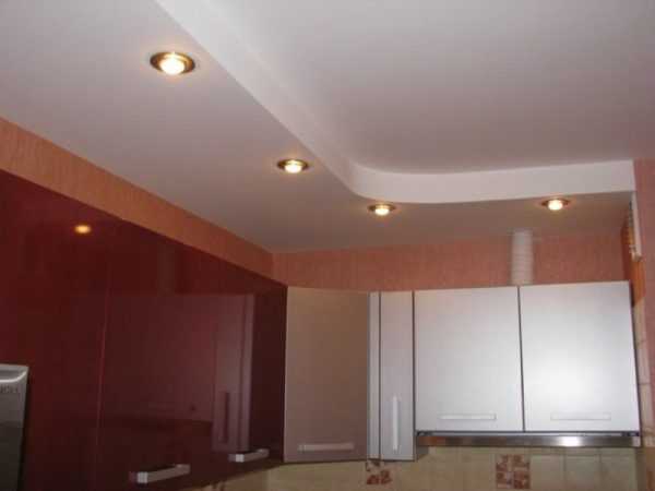 Двухуровневый потолок на кухне из гипсокартона