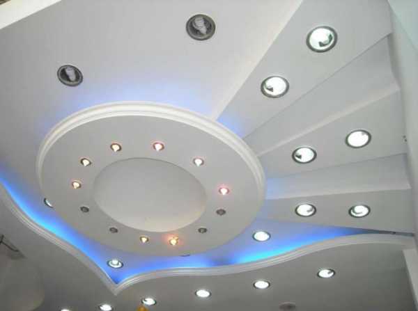 Потолки из гипсокартона с несколькими видами светильников