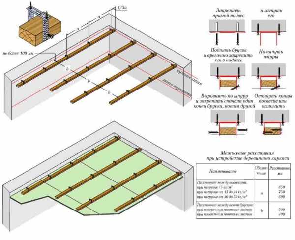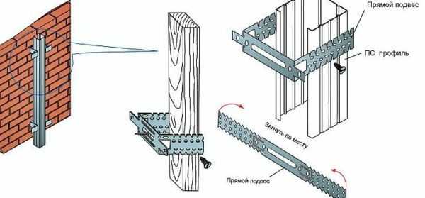 - На поверхностях стен или потолка крепятся соответствующие подвесы.