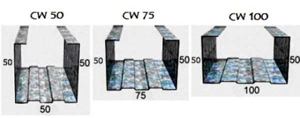 - CW – как основа в комплектации с UW. Параметры: 20х50, 75х50, 100х50 мм, длина – 3-4 м, толщина – 0,40-0,55 мм.