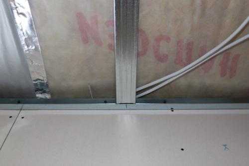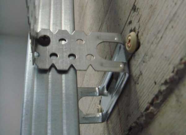 - на метки укладываются направляющие профили, в которых с шагом в 350-400 мм сверлятся отверстия под крепеж;