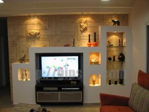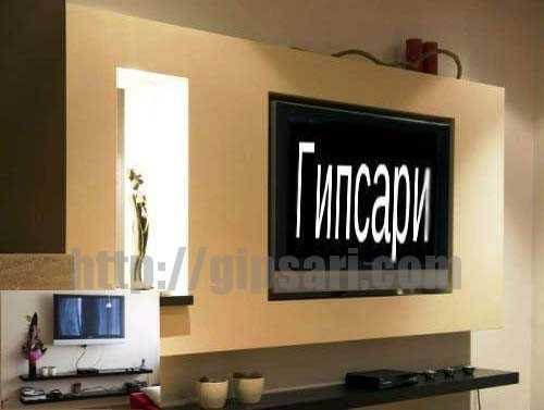 Они могут быть различных форм и размеров, как правило, это связано с размерами самого телевизора, местом нахождения электрических розеток, телевизионного кабеля и желаемых визуальных эффектов. Перед тем, как начать монтаж всей конструкции, нужно навесить телевизор на стену, в том месте, где он будет располагаться в дальнейшем. Или вы должны знать точные габариты телевизора, по периметру и глубине навешивания.