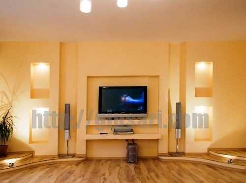 Одним из дизайнерских решений в оформлении комнаты для большего визуального пространства и оригинальности, является изготовление ниш из гипсокартона под телевизор.