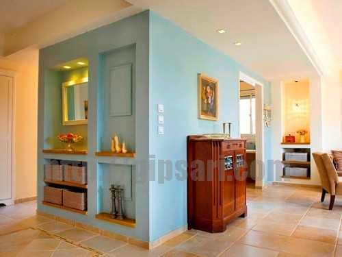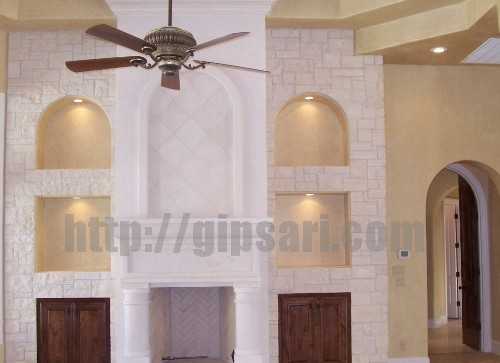 Гипрок можно украсить простой отделкой в виде обоев или покраски, а можно использовать более изящные вариации дизайнерской отделки, например плитку или природный камень. Для последнего вида лучше не использовать обычный гипсокартонный лист, поскольку этот материал недостаточно устойчив к влаге. Существую три вида гипсокартонных листов: обычные, зеленые – влагоустойчивые и красные – огнеупорные. Для отделки природным камнем нужно использовать именно зеленый гипсокартон. Красный же применяют обычно для конструкций, которые располагаются над печами или рядом с другими источниками открытого огня, в целях повышения уровня пожарной безопасности в доме.