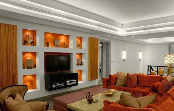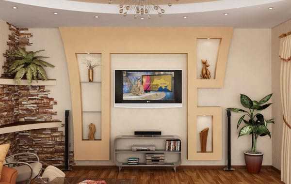 Варианты оформления стенки из гипсокартона в гостиной