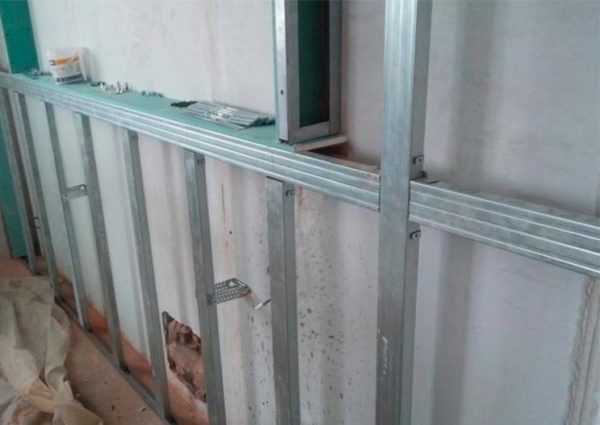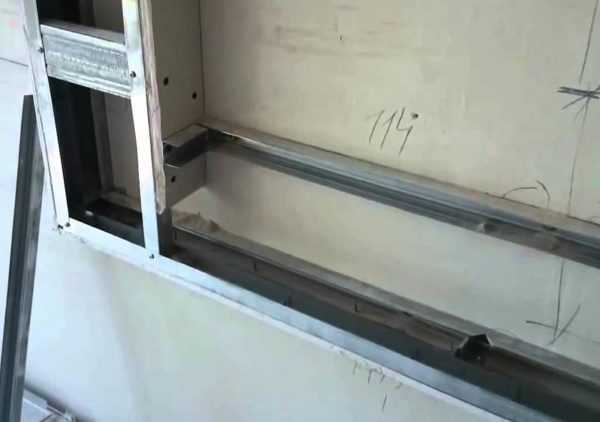 Для того чтобы закрепить плиты гипсокартона с дальнейшим устройством ниш из металлического профиля строится каркас конструкции с нишами