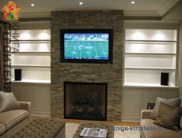 Не менее популярным остается и способов устройства мебели из гипсокартона. Использование гипсокартона не имеет такой давней истории как применение древесины, но полюбился как профессиональным строителям, так и домашним умельцам за его универсальность и относительную дешевизну Основная сложность при работе с гипсокартонными конструкциями состоит в умении грамотно сконструировать каркас. Непосредственно гипсокартон так же имеет свои нюансы использования и во время работы с ним возникает огромное количество вопросов ответы, на которые можно найти в перечисленных далее статьях: Стены с нишами и полками из гипсокартона , Создаем уникальный дизайн потолка , Стены из гипсокартона , Арка из гипсокартона. Установка и фото , Установка гипсокартонной перегородки. Michail RybakovКак и в случае с гипсокартонными конструкциями, как и с деревянными можно часто видеть применение не только гипсокартона. Для создания оригинальных и ярких горок используют деревянные и стеклянные детали, так же декорируют плитами из натурального камня или панелями под натуральный камень, вставками из обработанных деревянных досок и колоритных необработанных стволов деревьев. Стенки — горки в таком стиле могут поддержать как эко интерьер комнаты, так и этнические мотивы оформления. («Покраска стен водоэмульсионной краской» , «Ламинат на стену» , «Стеновые панели под камень» , «Как шпаклевать стены под покраску» , «Гипсовая плитка под камень» , «Древесина в отделке пола и стен. паркет и фантазии из дерева» ). Например, сочетание дерева и камня отлично впишется в скандинавский дизайн интерьера или дом в стиле шале. К тому же, благодаря появлению моделей устройств имитирующих настоящие камины мебельные стенки стали украшаться этим стильными предметами, которые независимо от того функционируют ли как настоящие камины обогревая комнату (электрические камины) или просто служат оригинальным декором но все равно наполняют атмосферу гостиных ощущением домашнего уюта. («Галерея из 30 вариантов каменных каминов в интерьере» , «Камин для вашего дома» ). Стильные стенки для гостиной фото . (Рис. 17, 18, 19, 20, 21, 22).