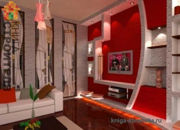 Декоративные стенки из гипсокартона под телевизор в зале своими руками: фото дизайна интерьера