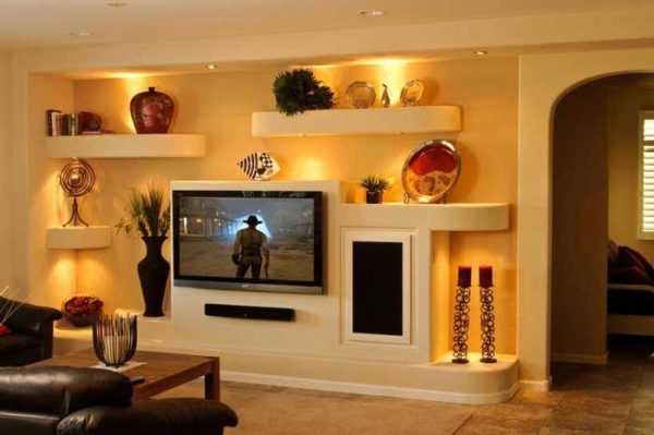 Оформление и дизайн стенки под телевизор