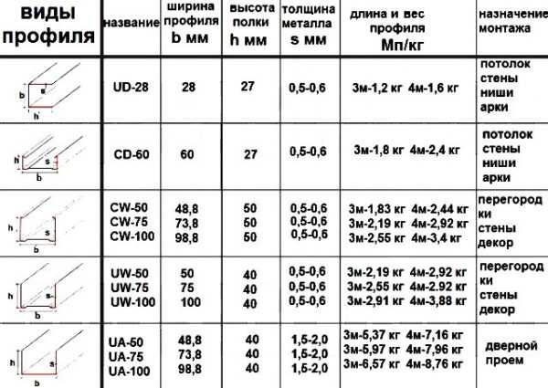 Существующие размеры металлического профиля - направляющий профиль;