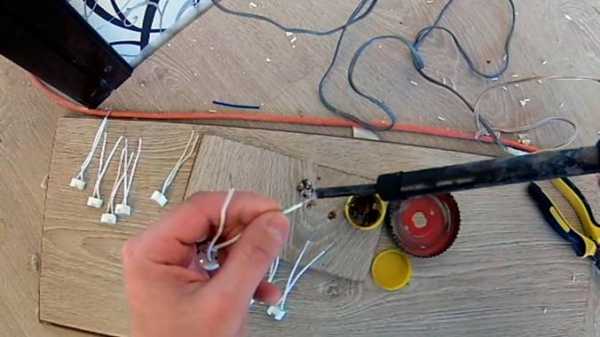 ΠΠ°ΡΠ΅ΠΌ ΠΈΠ· ΠΏΠΎΠ»ΡΡΠ΅Π½Π½ΠΎΠ³ΠΎ ΠΎΡΠ²Π΅ΡΡΡΠΈΡ ΠΈΠ·Π²Π»Π΅ΠΊΠ°Π΅ΡΡΡ ΠΊΠ°Π±Π΅Π»Ρ. ΠΠ³ΠΎ Π½Π°Π΄ΠΎ ΠΏΠΎΠ΄Π³ΠΎΡΠΎΠ²ΠΈΡΡ Π΄Π»Ρ ΠΏΡΠΈΡΠΎΠ΅Π΄ΠΈΠ½Π΅Π½ΠΈΡ ΠΊ ΠΈΡΡΠΎΡΠ½ΠΈΠΊΡ ΡΠ²Π΅ΡΠ°.