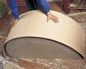 Π§Π΅ΡΠ΅Π· Π½Π΅ΠΊΠΎΡΠΎΡΠΎΠ΅ Π²ΡΠ΅ΠΌΡ, ΠΊΠΎΠ³Π΄Π° Π³ΠΈΠΏΡ ΡΠ²Π»Π°ΠΆΠ½ΠΈΡΡΡ, ΠΏΠΎΠ»ΠΎΡΠΊΡ ΡΠΊΠ»Π°Π΄ΡΠ²Π°Π΅ΠΌ Π½Π° Π΄Π²Π΅ ΠΎΠΏΠΎΡΡ ΠΈ ΠΏΠΎΡΠ΅ΡΠ΅Π΄ΠΈΠ½Π΅ Π½Π°Π³ΡΡΠΆΠ°Π΅ΠΌ ΡΠ΅ΠΌ β Π½ΠΈΠ±ΡΠ΄Ρ ΡΡΠΆΠ΅Π»ΡΠΌ, ΡΡΠΎΠ±Ρ ΠΏΠΎΠ΄ Π²Π΅ΡΠΎΠΌ Π³ΡΡΠ·Π° ΠΏΠΎΠ»ΠΎΡΠΊΠ° ΠΏΡΠΎΠ³Π½ΡΠ»Π°ΡΡ Π΄ΠΎ Π½ΡΠΆΠ½ΠΎΠΉ ΡΠΎΡΠΌΡ. ΠΠΎΠΆΠ½ΠΎ ΠΈΡΠΏΠΎΠ»ΡΠ·ΠΎΠ²Π°ΡΡ ΡΠΏΠ΅ΡΠΈΠ°Π»ΡΠ½ΠΎ ΡΠ΄Π΅Π»Π°Π½Π½ΡΠ΅ ΡΠ°Π±Π»ΠΎΠ½Ρ ΠΈΠ· Π΄Π΅ΡΠ΅Π²Π° ΠΈΠ»ΠΈ Π³ΠΈΠΏΡΠΎΠΊΠ°ΡΡΠΎΠ½Π° Π΄Π»Ρ ΠΏΡΠΈΠ΄Π°Π½ΠΈΡ ΠΎΠΏΡΠ΅Π΄Π΅Π»Π΅Π½Π½ΠΎΠΉ ΡΠΎΡΠΌΡ ΠΌΠΎΠΊΡΠΎΠΌΡ Π³ΠΈΠΏΡΠΎΠΊΠ°ΡΡΠΎΠ½Ρ. ΠΠΎ ΡΡΠΎ ΠΎΠΏΡΠ°Π²Π΄Π°Π½ΠΎ ΠΏΡΠΈ Π±ΠΎΠ»ΡΡΠΈΡ ΠΎΠ±ΡΠ΅ΠΌΠ°Ρ ΡΠ°Π±ΠΎΡ.