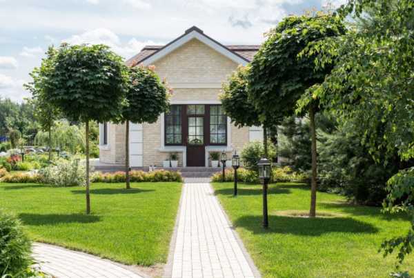 Если вы проживаете ближе к северу России, то ни кабельный обогрев, ни снегозадержатели не смогут 100% гарантировать, что однажды большой кусок льда не свалится на вас или на дорогой придорожный светильник. А поэтому придомовая территория домов с этой формой крыш устраивается обычно по таким принципам: