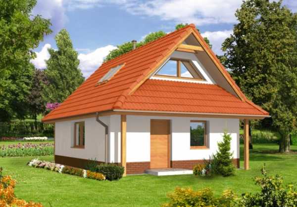 Двускатная полувальмовая напоминает треугольник. Скат крыши (вальма) впереди и позади дома очень короткий, заканчивается чуть ниже конька. Такой тип крыши выглядит очень компактно и идеально подходит для небольших домов.