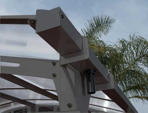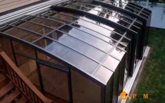 На сегодня в большинстве самых интересных проектов конструкций крыш и навесов на основе поликарбоната широко используются как сотовый, так и монолитный материал. Самыми интересными и удобными в пользовании оказываются схемы, где боковые стены или крыша могут перемещаться и сдвигаться, тем самым меняя площадь затенения.