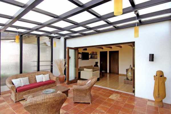 Прозрачная крыша из них установлена на многих террасах в нашей стране. Подобные конструкции выполнены из поливинилхлорида или поликарбоната. Эти материалы отличаются высоким уровнем устойчивости к воздействию температурных перепадов, они полностью инертны к влаге, имеют небольшой вес, поэтому без труда монтируются на террасах хозяевами самостоятельно.