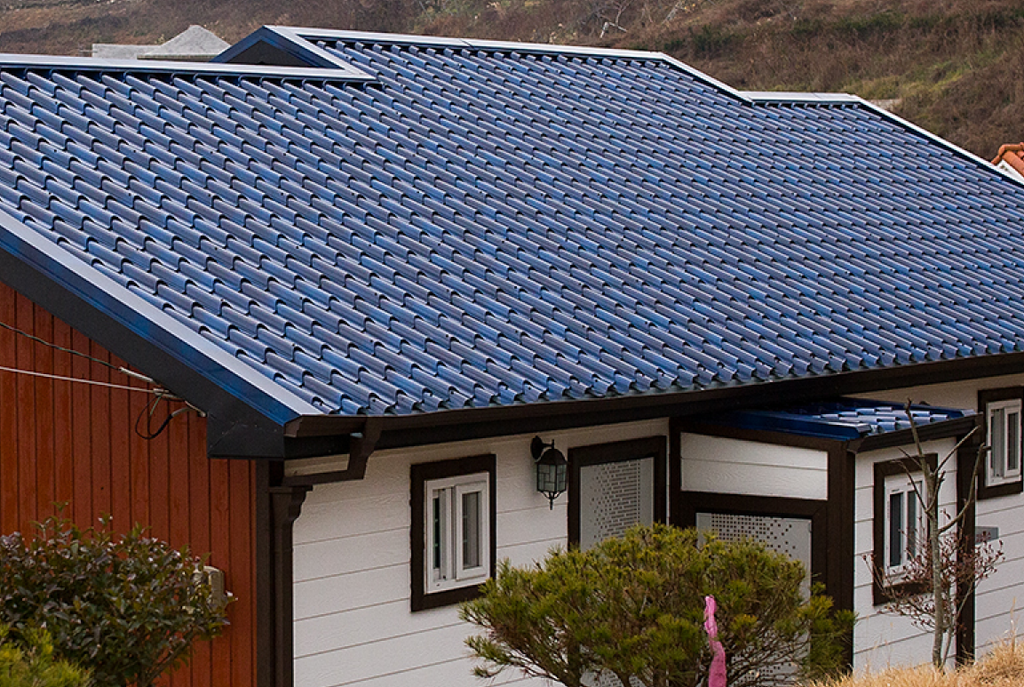 - После заполнения всей крыши дома устанавливаются доборные элементы: конек, карнизная планка, фронтальные планки.