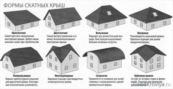 Конструкции крыш частных домов по своей форме также можно разделить на несколько видов:
