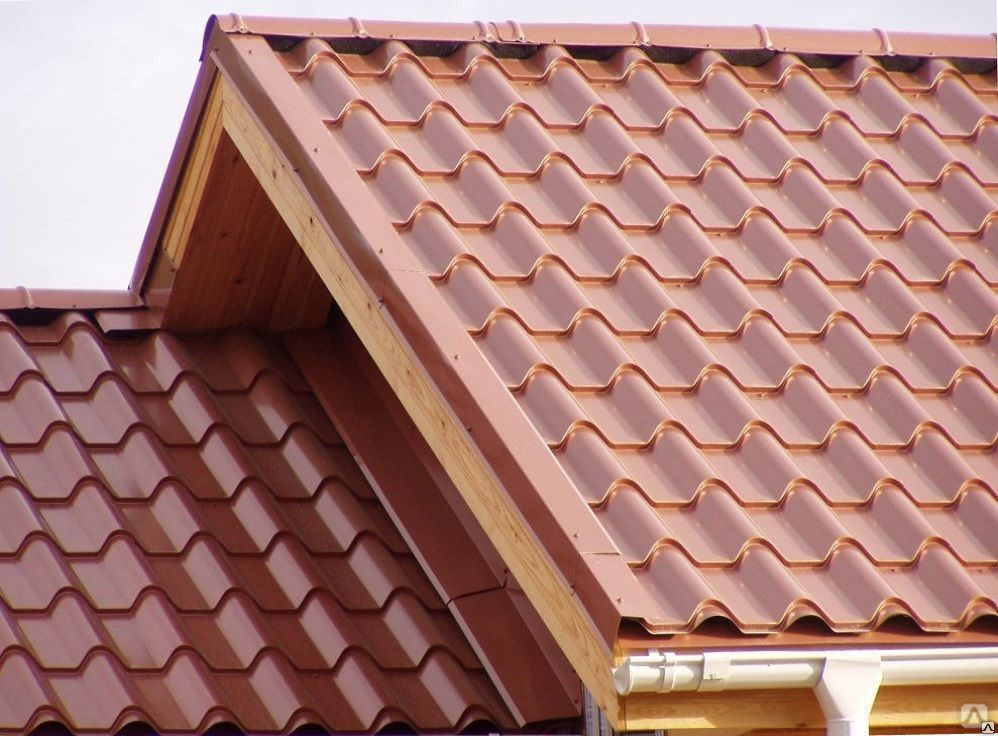 - При правильно выполненной обрешетке торцевая планка накроет торец точно по волне профиля металлочерепицы. Ее крепят с помощью шурупов.