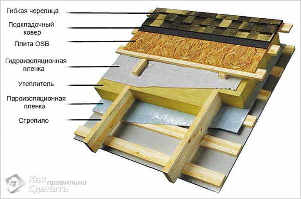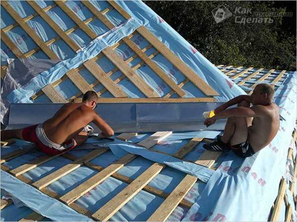 Установка обрешетки, гидроизоляционного слоя, изоляции и кровли.