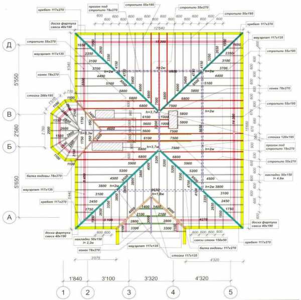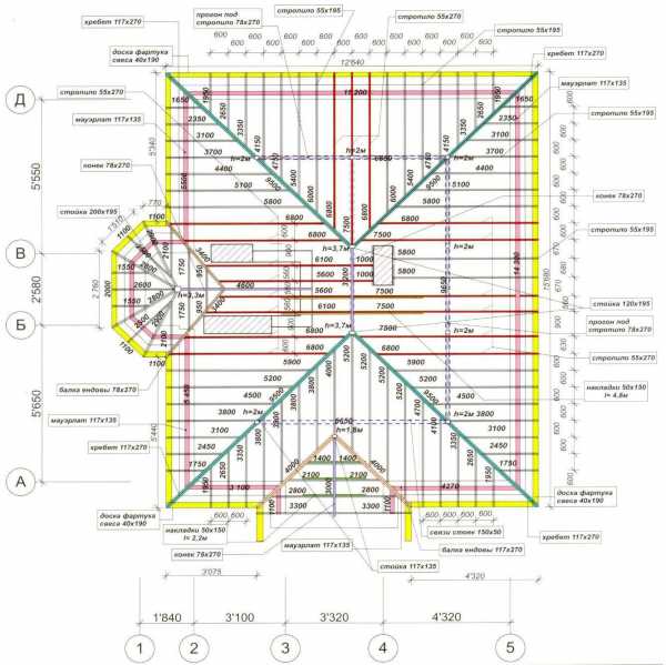 Чертеж стропильной системы многощипцовой крыши Это может быть интересно! В статье по следующей ссылке читайте про установку крыши на балконе: разновидности конструкций и цены + примеры на фото.