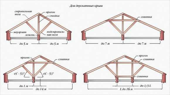 Несущий каркас двускатной крыши строится из стропил или стропильных ферм. Первый используется в большинстве жилых домов.
