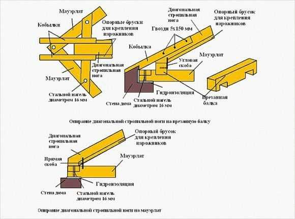 При креплении балки к стропильной ноге применяют один из нескольких методов: