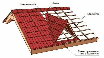 - Ендова. Ендовой называется внутренний угол, образованный в месте соединения соседних скатов.