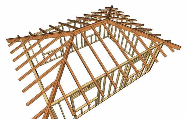 Четырехскатная крыша появляется в результате пересечения двухскатных конструкций.