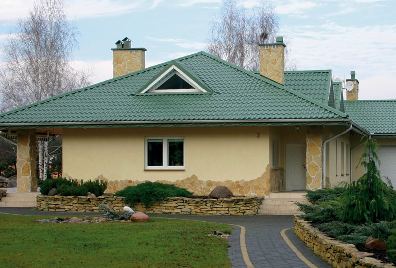 Если же дом жёлтый, то самым выигрышным вариантом будет зелёная крыша.