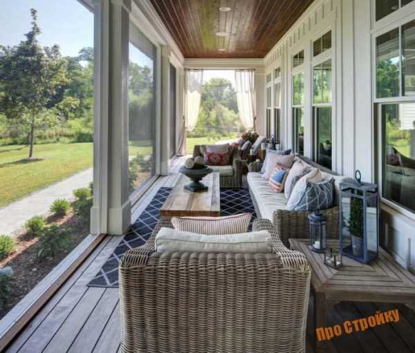 Для создания стен обычно применяется вагонка или деревянные щитки. Важно продумать размещение окон в новом помещении. При желании террасу можно выполнить и открытой.