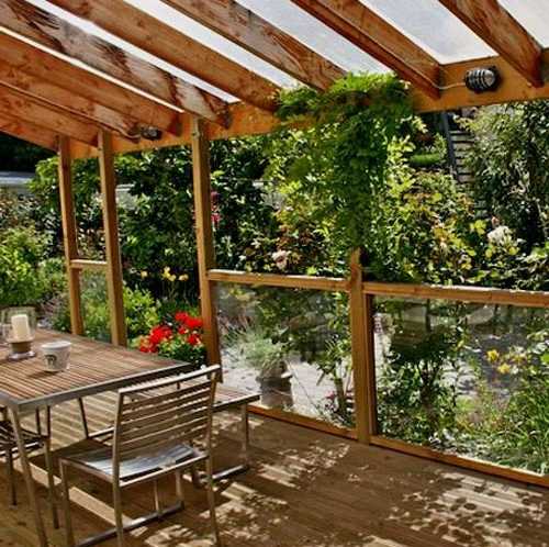 Благодаря немалому числу положительных характеристик поликарбонат часто применяется вместо стекла при строительстве веранд.